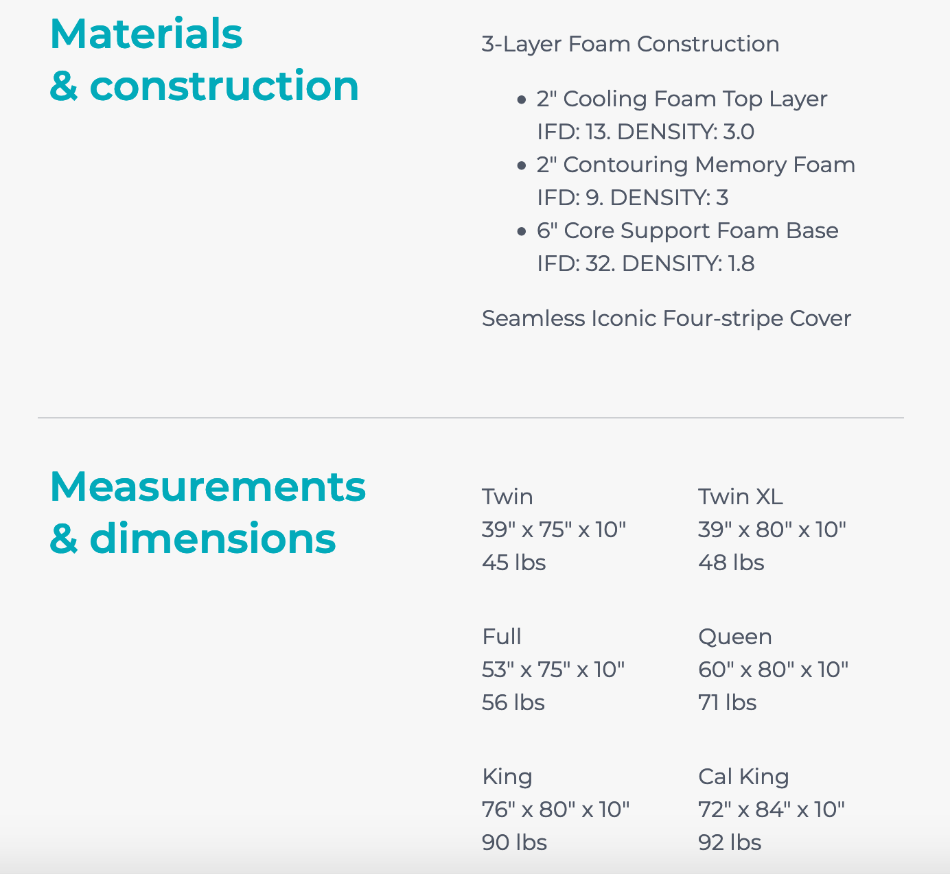 Leesa, for example, provides mattress specs for their Leesa Original Mattress.