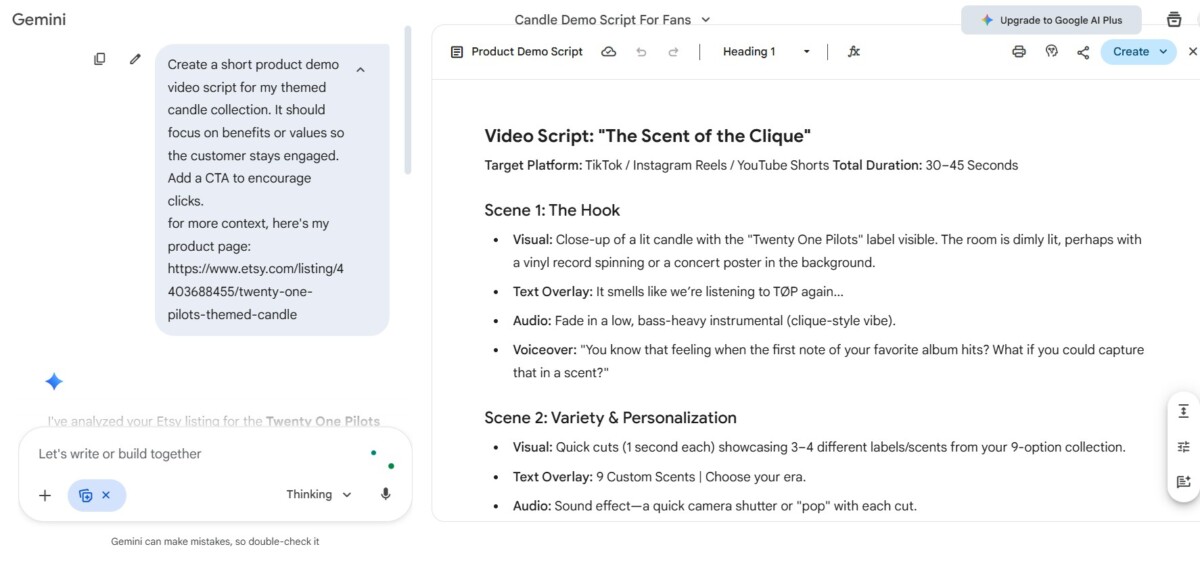 You can use Gemini to do this quickly and strategically. Instead of starting from scratch, prompt it to generate scripts that focus on benefits or objections. It can also create compelling calls to action.