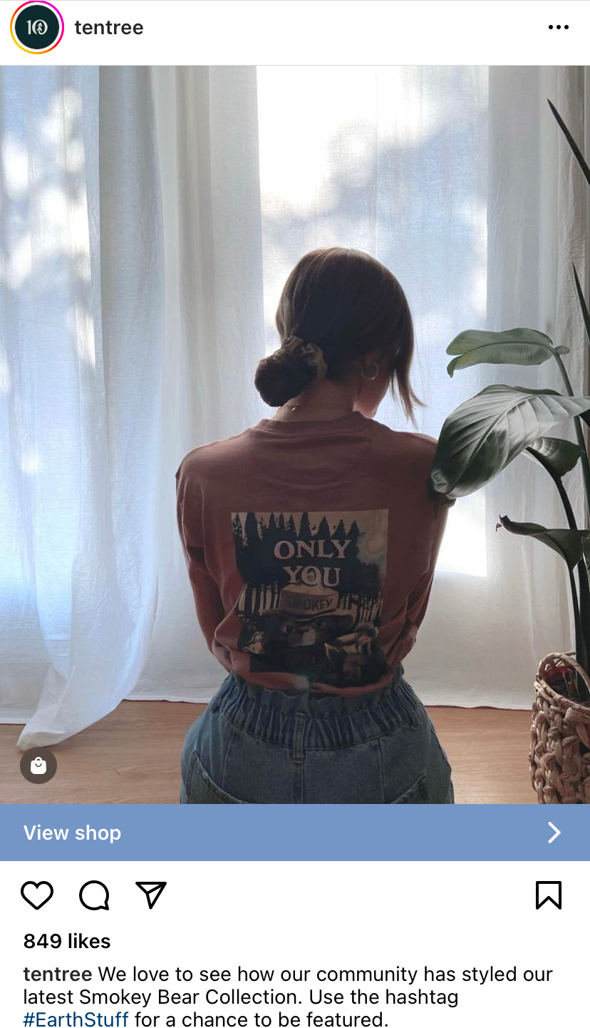 Apparel brand Tentree carries strong sustainable values, and these are reflected throughout its Instagram content.