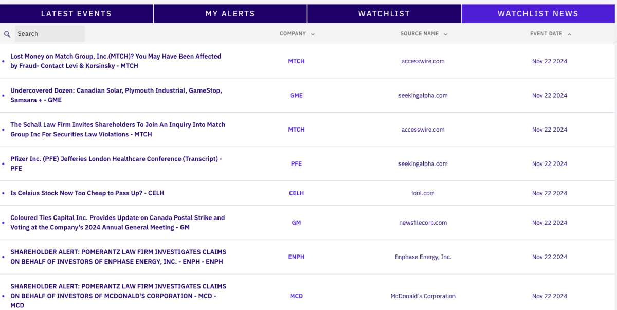 The core of LevelFields lay in its ability to identify events that are proven to impact stock prices. These could be things like stock buybacks, dividend hikes, layoffs, or activists trading. The platform analyzes these events using AI and historical data to give you alerts on what might happen next. This feature helps you focus on actionable opportunities instead of wasting time sorting through irrelevant information.