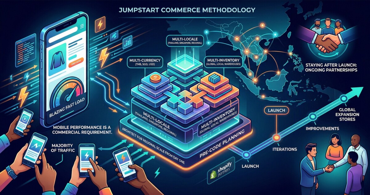If you are running a Shopify store at the mid-market or enterprise level and you are planning a migration, an upgrade to Shopify Plus, or a regional expansion into Southeast Asia, this piece is for you. If you are pre-revenue or looking for a basic theme build, this is not the right read right now – and Jumpstart Commerce would likely tell you the same.