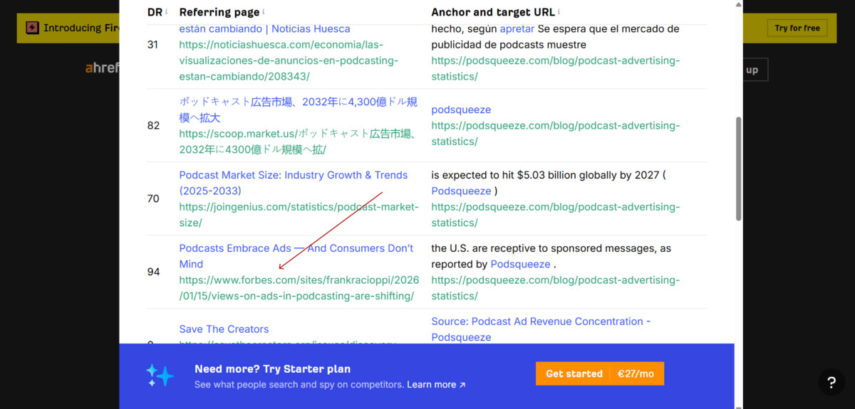 For example, this article about podcast advertising statistics even got a backlink from Forbes.