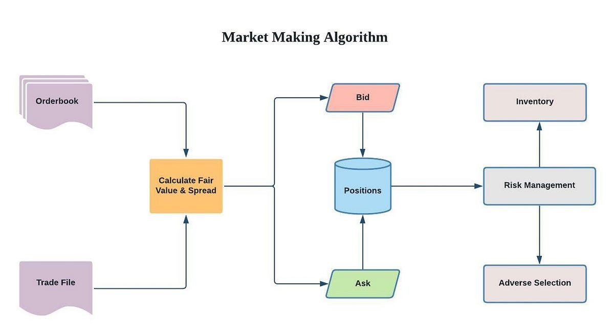 A market maker’s job is to make sure there is always enough liquidity for buying and selling so that trades can happen quickly and prices don’t change too much. Before, institutional firms or professional market makers did this job most of the time. They do their jobs for their own reasons and use their own risk models.