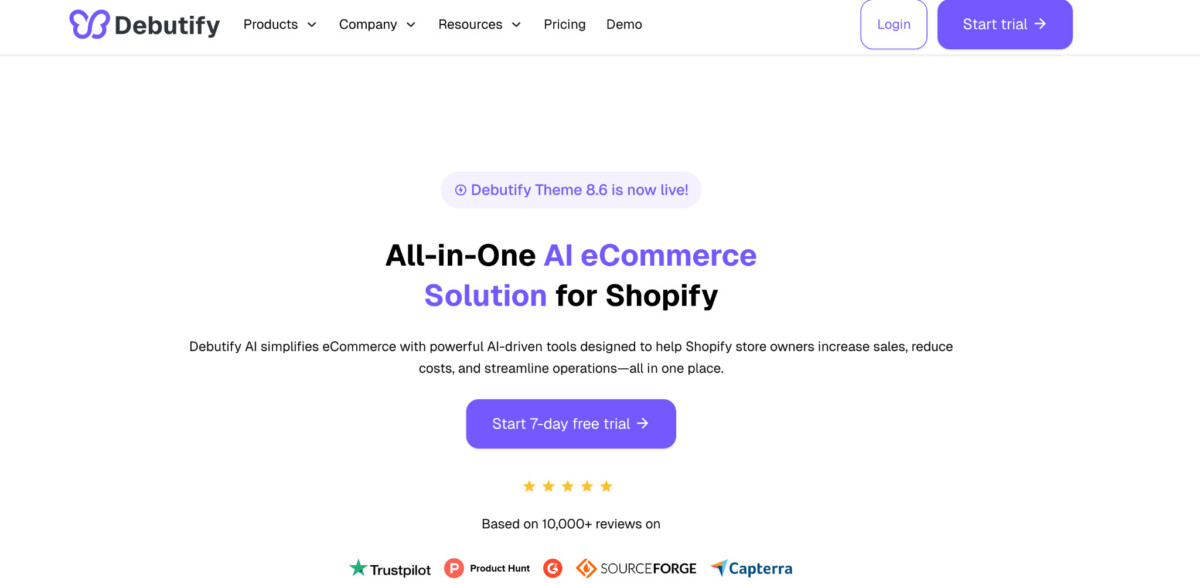 Debutify offers a free, code-free Shopify theme optimized for conversions. With over 70 built-in widgets and AI-powered features, it enables store owners to create a professional and high-performing online store without the need for coding expertise.