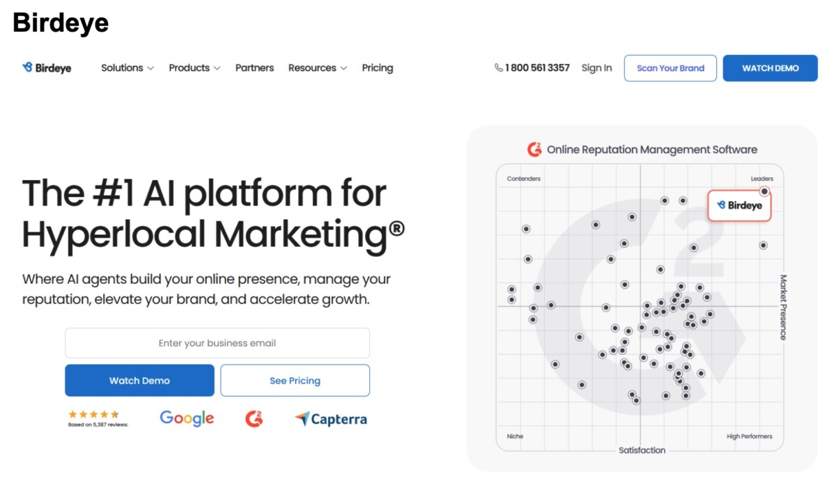 Birdeye offers a robust, all-in-one GenAI solution for enterprise-scale and multi-location reputation management, covering reviews, messaging, listings, and social media monitoring.