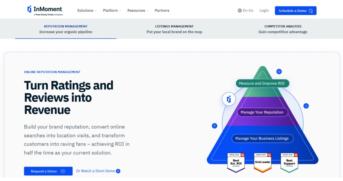 InMoment offers enterprise-level reputation and customer experience (CX) tools. It goes beyond monitoring to offer deep feedback analysis and voice-of-customer programs.
