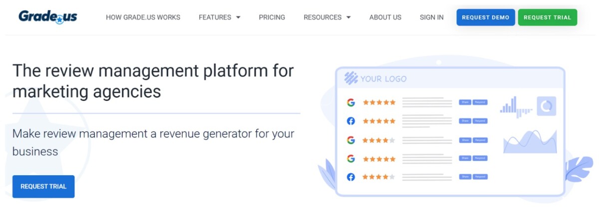 Grade.us focuses on helping businesses generate, manage, and market customer reviews. It’s ideal for agencies or local service providers looking to scale review collection and manage reputation.
