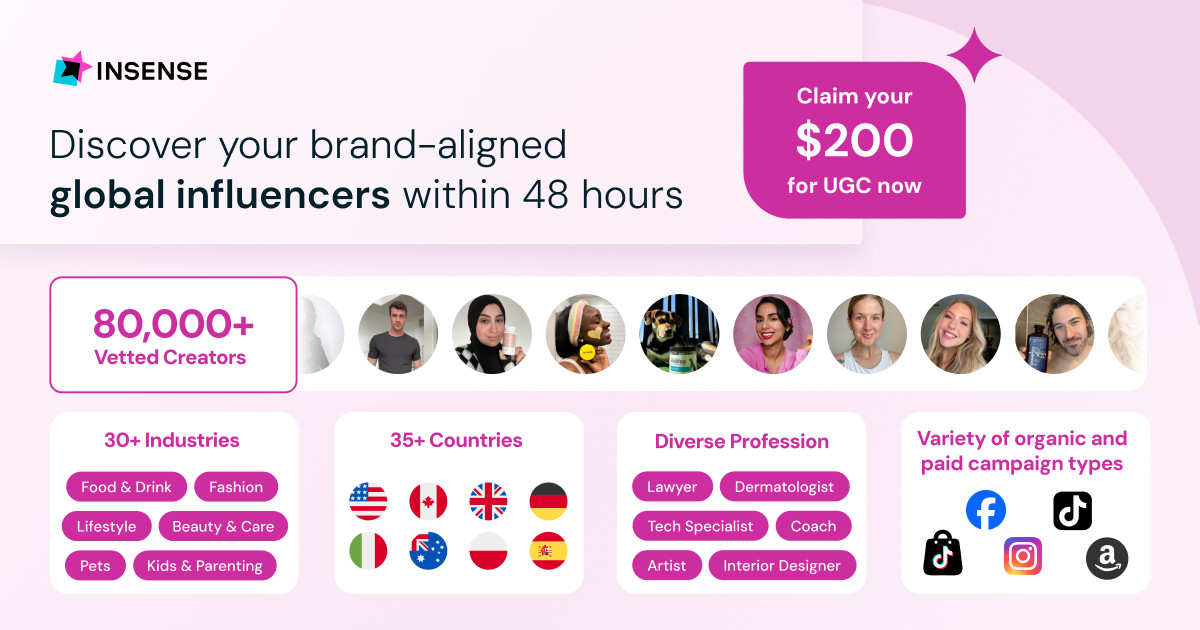 More than 3,500 ecommerce brands use Insense to scale creator marketing without making their teams work extra hours. With 80,000+ vetted creators across 35+ countries and a native Shopify integration for product seeding, Insense helps brands launch UGC, influencer campaigns, and creator-led ads all from one platform.