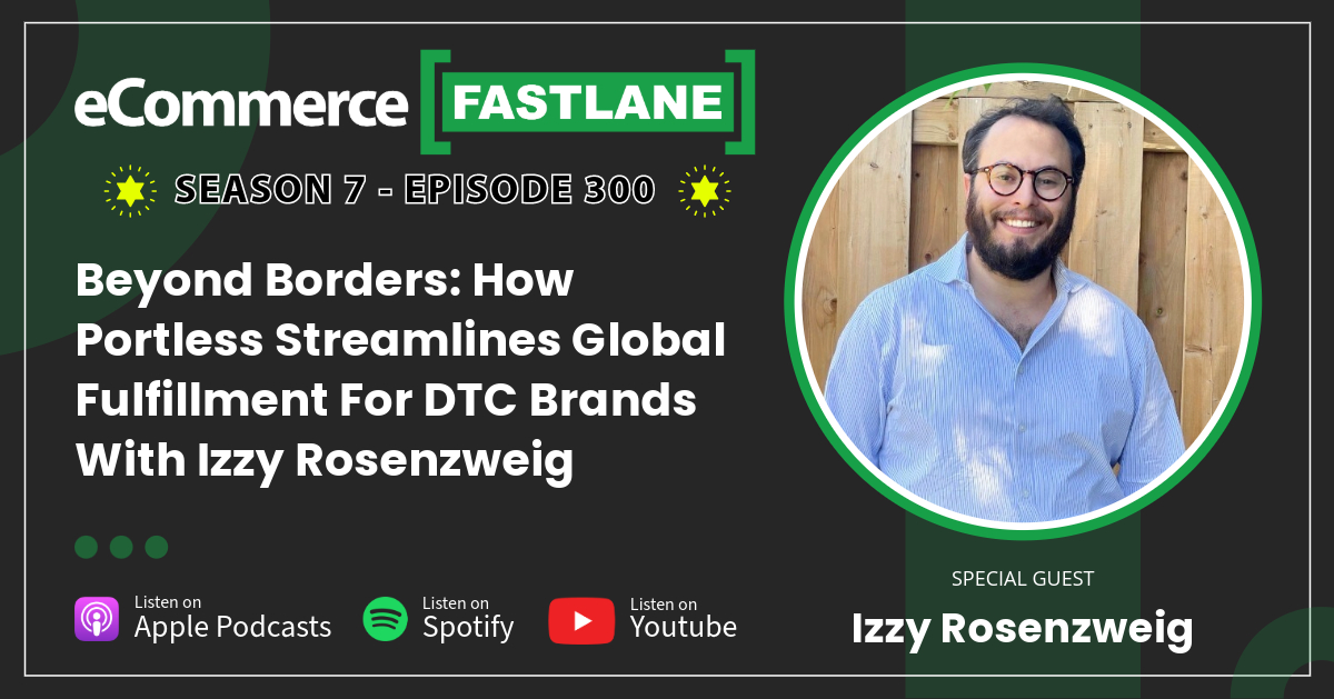 In a recent episode of the eCommerceFastlane Podcast, I had a chat Izzy Rosenzweig, the Founder and CEO of Portless, to discuss the company’s innovative approach to global fulfillment for direct-to-consumer (DTC) brands. He shared valuable insights into how Portless is revolutionizing the industry by providing a fully localized experience for customers in international markets, eliminating container costs, and offering efficient direct shipping from China. To learn more about Portless’s unique model and the advantages it offers DTC brands, I highly recommend listening to the complete podcast episode here.