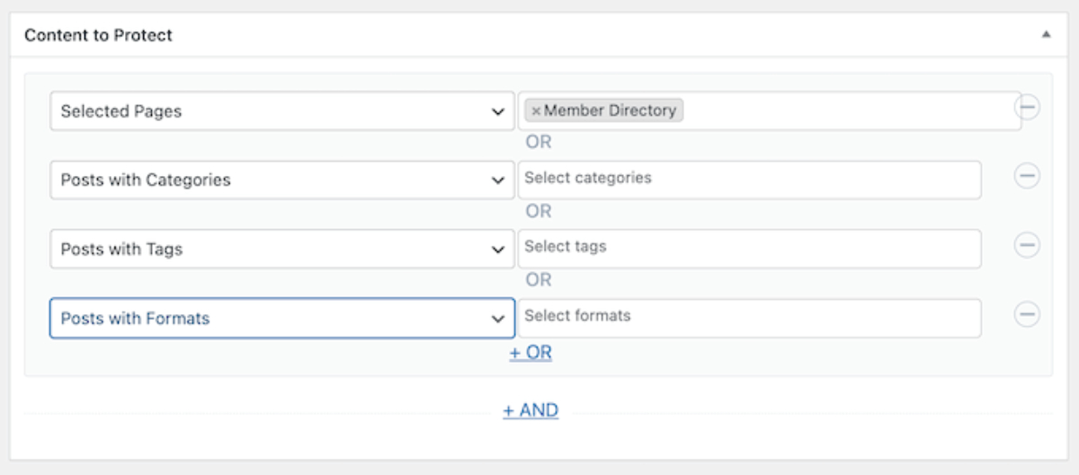 With ProfilePress, you can restrict access to pages, child pages, posts, custom post types, categories, tags, and taxonomies.