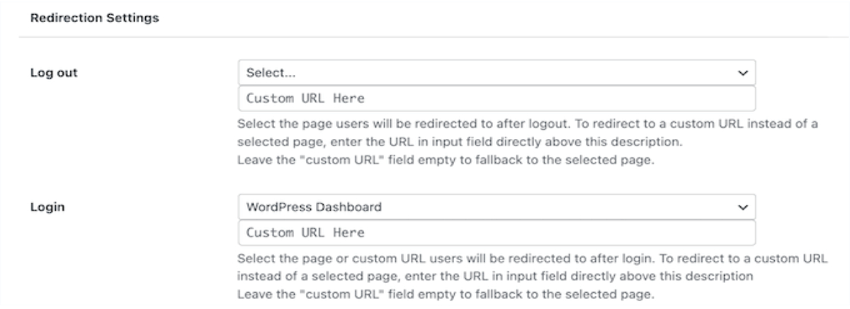 Once satisfied with the form design, you can set up redirects to guide user navigation. For example, users can be automatically redirected to the My Account page after a successful login.