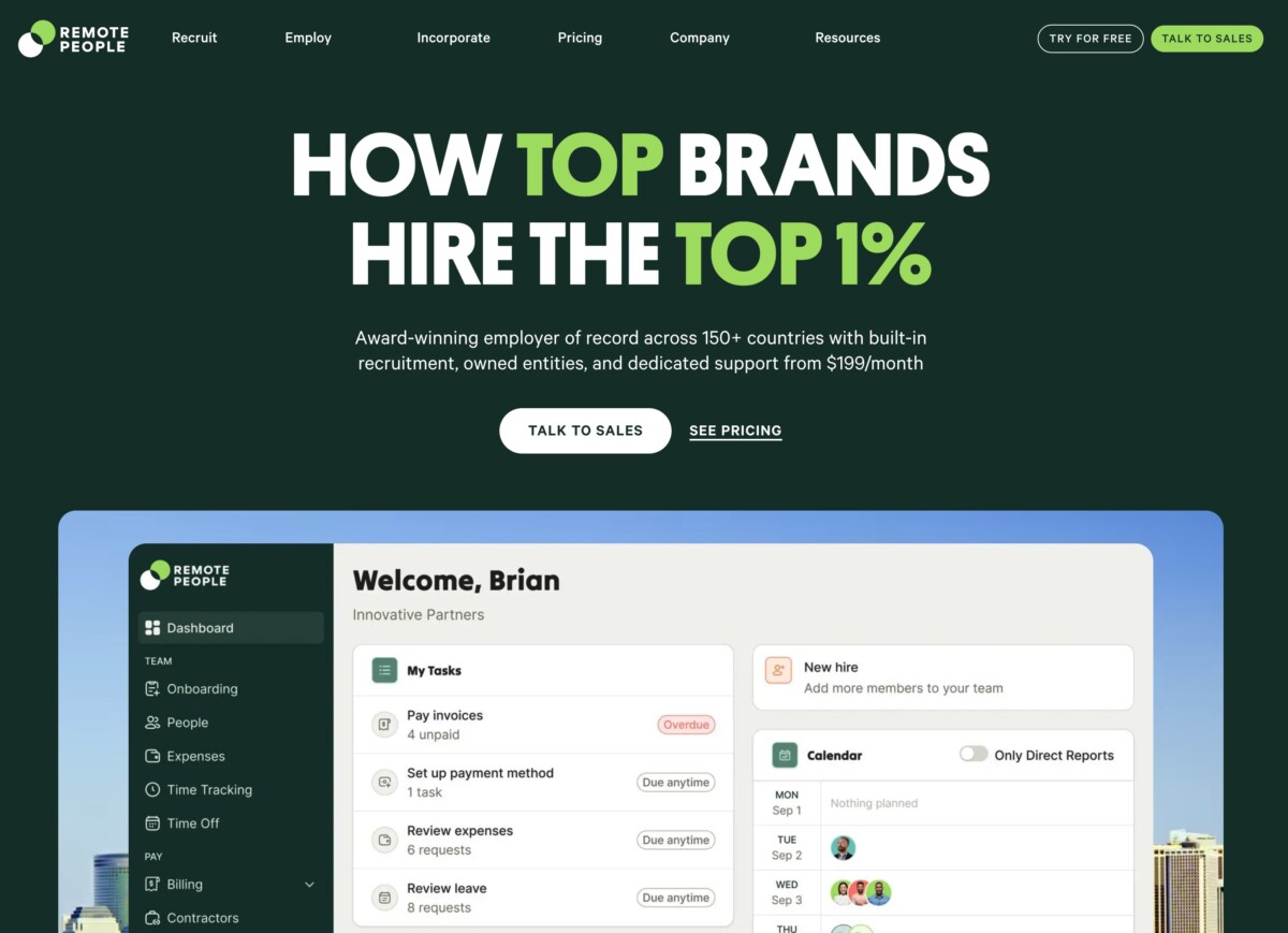 - Remote People combines recruitment and employment infrastructure, letting you source candidates and onboard them through one provider across 150+ countries.