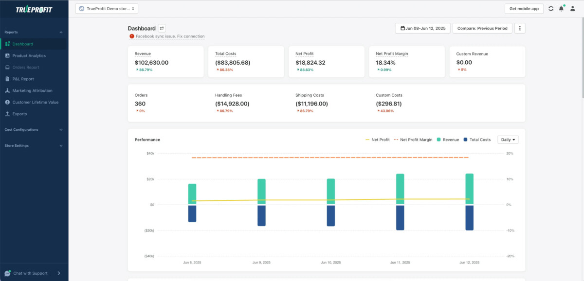 - Real-time profit dashboard (product, ad channel, store level): See which products and channels stay profitable after fees-not just which ones sell.