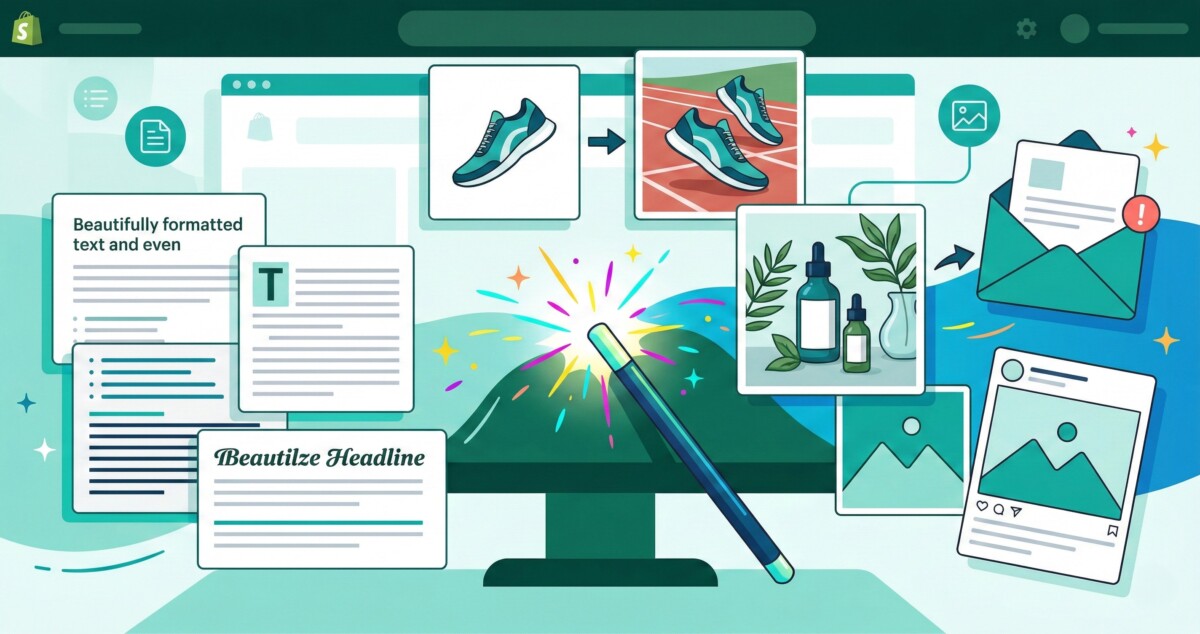 Shopify Magic is the creative layer of Shopify’s AI suite. Think of it as the specialist that handles all content and media generation across your store. It does not manage your business, analyze your data, or make strategic decisions. It creates: words, images, emails, and content, at speed and at scale, in your brand voice.