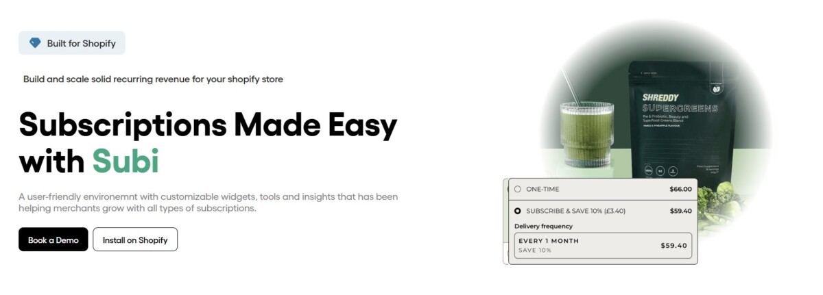 At its core, Subi integrates seamlessly with Shopify’s native checkout and ecosystem, allowing brands to offer subscriptions alongside one-time purchases in a fully unified flow. Merchants can configure different subscription types, such as recurring product deliveries, flexible subscription plans, and membership-style billing, while maintaining full control over pricing logic, billing intervals, and customer experiences.