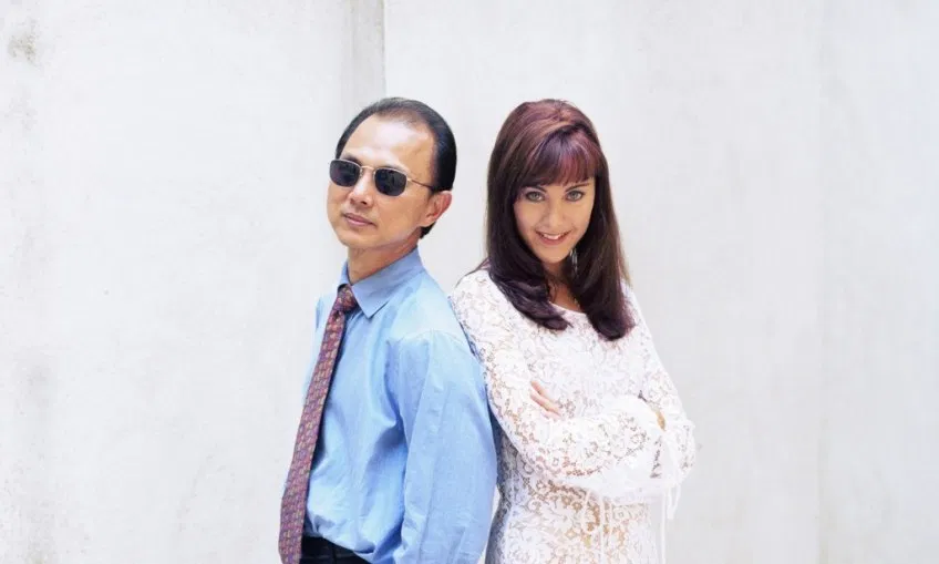 There’s always going to be a link with you to Jimmy Choo (pictured below, with Mellon). What are the pros and cons of being so closely associated with such a famous brand that’s operating in the same space as you?