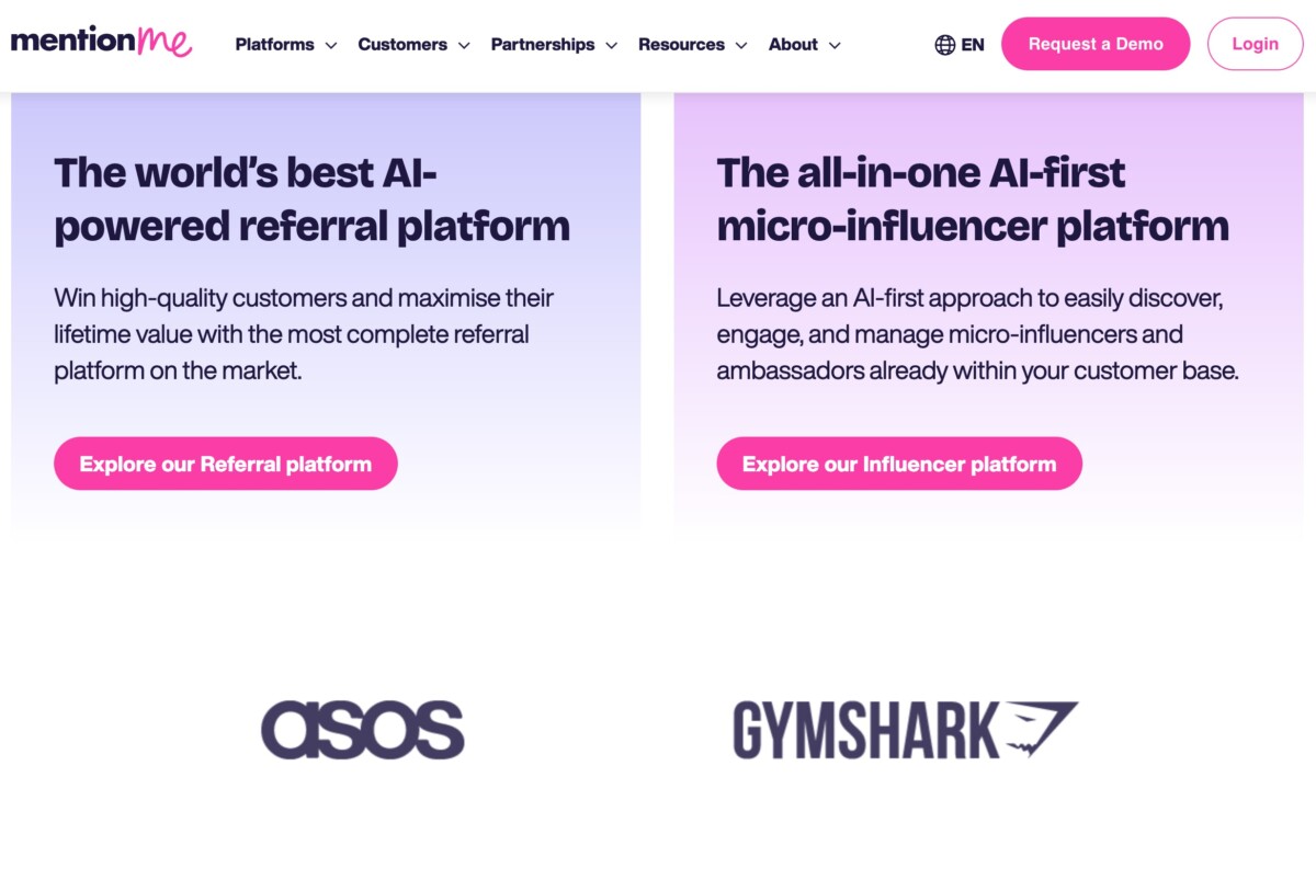 Mention Me helps brands unlock organic, customer-led growth. It turns existing customers into brands’ most powerful marketing channel. Mention Me’s AI-powered influencer marketing platform optimizes micro-influencer activation and referral marketing, making it easy to find, interact with, and manage high-potential advocates who are already part of your clientele.