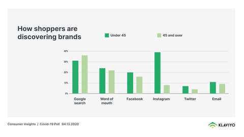 In the middle of April, consumers under the age of 45 were heavily focused on Instagram accounts of new (to them) brands, while those over 45 were directing their shopping searches on Google. Based on your target audience, it’s important to consider these insights in creating your paid media campaigns.