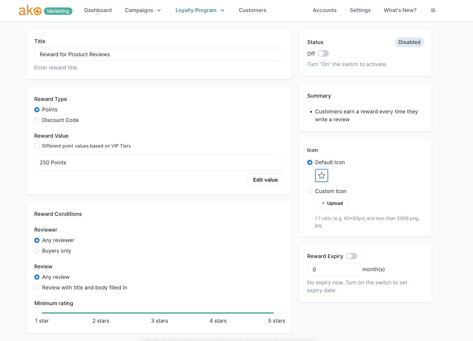 During the Black Friday Cyber Monday (BFCM) rush, you can enhance customer engagement in two impactful ways. Incentivize reviews with exclusive BFCM offers, such as special discounts, early access to deals, and promotions, exclusively for customers who share their thoughts. Ako’s Loyalty Program introduces VIP Tiers, creating a sense of exclusivity during BFCM and inspiring continued engagement with your brand. Additionally, the app provides various ways for customers to earn points, including signups, birthdays,and 1-Click Social Login and reviews. Ako’s Loyalty Program, which seamlessly integrates with Judge.me. This integration partnership allows you to incentivize customer reviews. This not only encourages feedback but also reinforces loyalty by rewarding their engagement. For example, when adding a product review loyalty campaign with 250 points reward via Ako Marketing app, you can encourage your customers to share their reviews and earn 250 points for the next purchase.