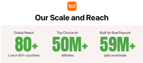 Think of the TEMU Affiliate Program as your gateway to global earnings. Live in over 80 countries, TEMU allows affiliates to connect with millions of shoppers worldwide. No matter if you operate a coupon site, a loyalty program, a payment solution, or simply have traffic to monetize, there’s a place for you here.
