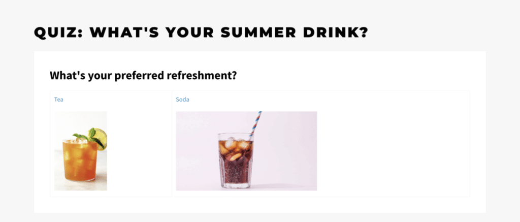 For our scenario, we imagined working for a beverage company. Our quiz, “What’s your summer drink?” will give visitors a beverage recommendation based on their choices in the quiz. The end goal is to create segments based on the selections our visitors made.