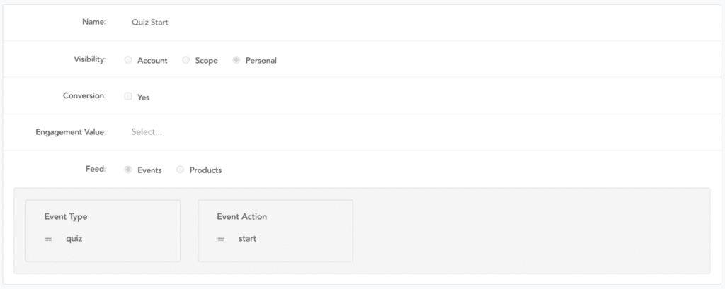 For the first page of the quiz, we added a snippet flagging that the visitor started the quiz:zaius.event("quiz", {action: "start"});