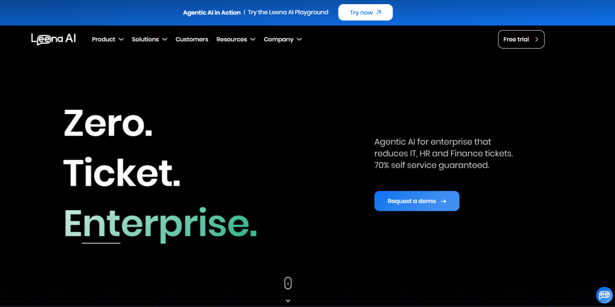 Leena AI is a leading Agentic AI-powered Gen AI Agent helping build Zero-Ticket Enterprises worldwide. It redefines how employees get work done while delivering a unified experience. By helping reduce tickets across employee-facing functions like IT, Finance, and HR, Leena AI guarantees a 70% self-service ratio in the contract. The advanced enterprise work assistant is backed by Leena AI’s proprietary large language model, WorkLM™.