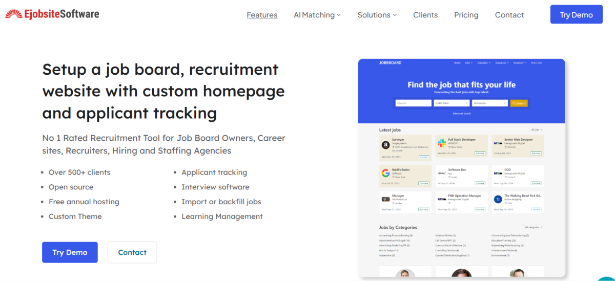 When it comes to recruiting, one size doesn’t fit all. eJobSiteSoftware provides customizable job board software that allows companies to launch specialized job boards for specific industries. This platform empowers businesses to take control of their hiring process, offering features like automated job posting, application tracking, and resume management—all within an intuitive interface.