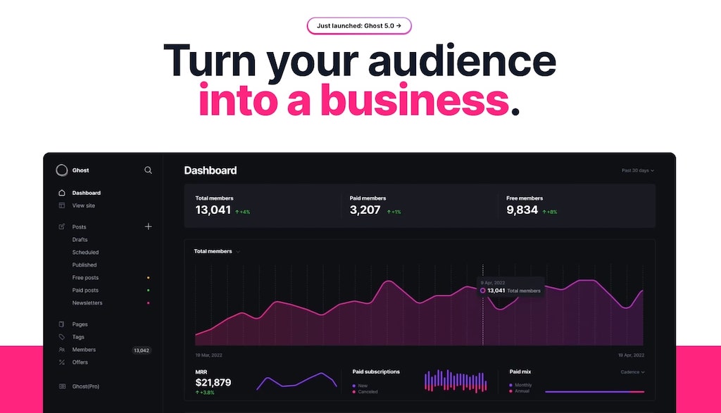 Ghost is open-source and offers self-hosted or managed options. It’s great for those who want to customize and integrate with various tools and for tech-savvy users who want full control over their newsletter setup.