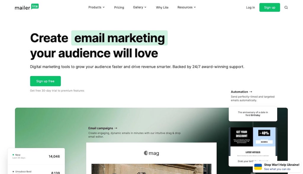 MailerLite does more than just emails. You can also make landing pages and websites right on the platform. For those wanting to automate their marketing, it has features for targeted email sequences.