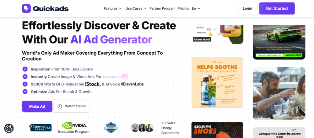The platform’s intelligent algorithms analyze successful advertising patterns and automatically incorporate proven design principles, compelling copy variations, and platform-specific optimizations. By streamlining the creative process from concept to completion, AI ad generator – ADMaker.ai empowers ecommerce businesses to maintain consistent, high-quality advertising campaigns across multiple channels while significantly reducing both time investment and creative costs.