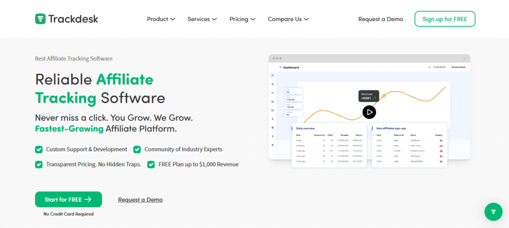 Trackdesk is a powerful affiliate tracking software designed to help businesses manage, optimize, and scale their partner marketing programs with ease. The platform provides an all-in-one solution for tracking affiliate performance, automating payouts, and analyzing campaign effectiveness in real time. With an intuitive dashboard, businesses can monitor conversions, commissions, and traffic sources while leveraging data-driven insights to maximize ROI. Trackdesk supports multiple commission models, including CPA, CPC, CPS, and revenue sharing, allowing for flexible and customized affiliate program structures. Seamless integrations with eCommerce platforms, CRMs, and payment gateways ensure a smooth workflow. The platform also offers fraud detection tools, customizable reporting, and API access for advanced automation. Whether you’re a growing eCommerce brand, SaaS company, or digital marketer, Trackdesk helps you efficiently manage affiliate partnerships while driving revenue growth through performance-based marketing.