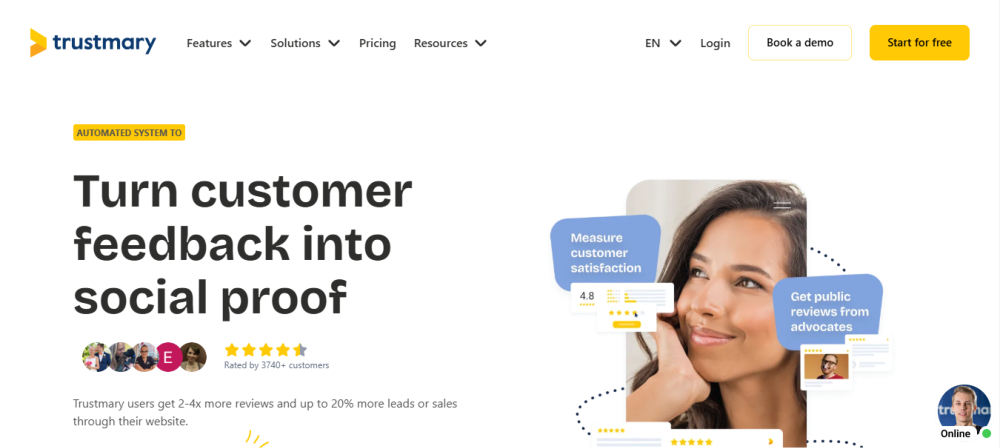 Trustmary is a customer experience management platform designed to help businesses collect, display, and leverage customer feedback to build trust and improve conversion rates. The platform enables companies to gather and showcase testimonials, video reviews, and 3rd-party reviews in a visually appealing manner. Trustmary integrates seamlessly with popular websites, eCommerce platforms, and CRM systems, allowing businesses to automate the collection of feedback from customers. It offers customizable widgets to display reviews and testimonials on websites, boosting credibility and influencing purchase decisions. Additionally, Trustmary provides detailed analytics to help businesses understand customer sentiment and improve customer experience. The platform is especially valuable for companies seeking to build social proof and enhance brand reputation through authentic customer feedback.