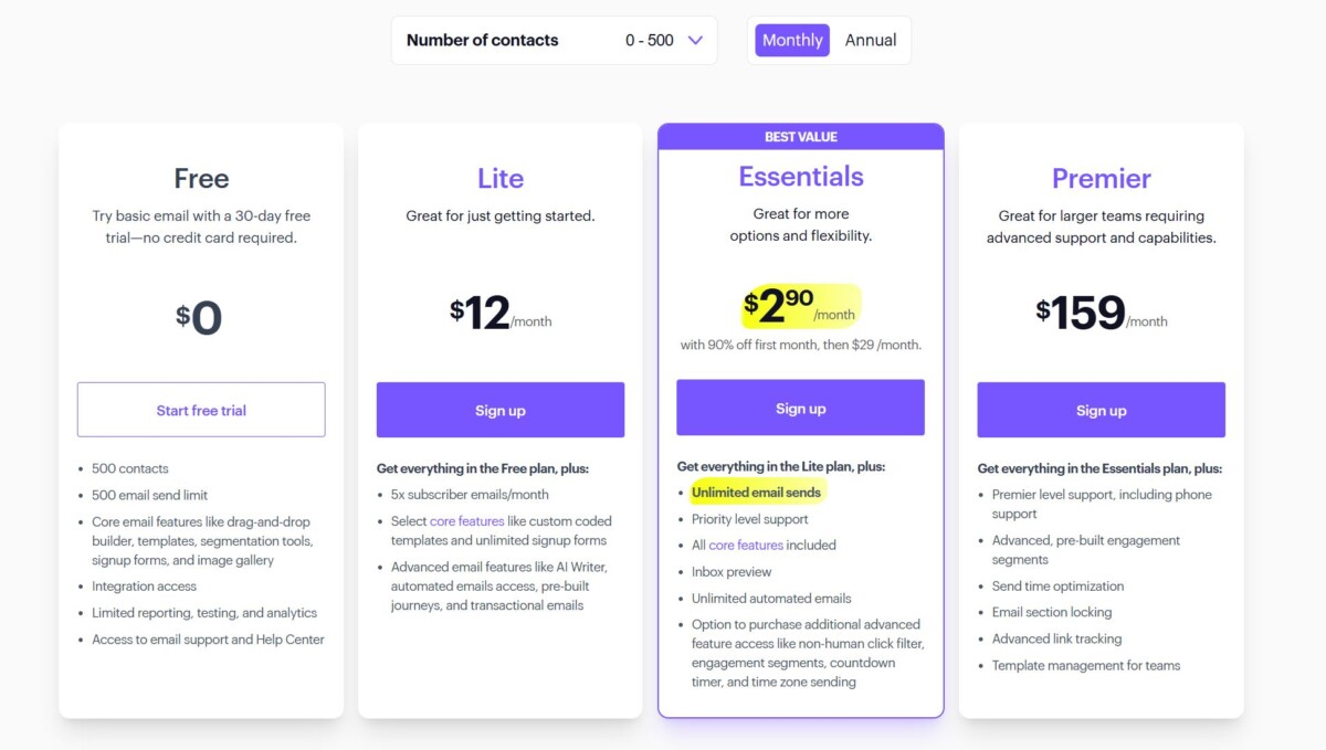 - Essentials: $2.90/month (For the first month and then $29/month)