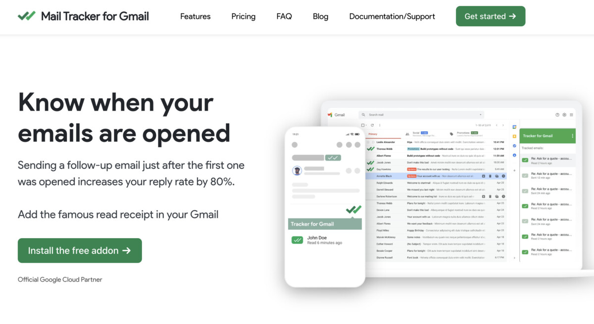 When it comes to simplicity, Mailtrack is a great choice. It’s a lightweight tracking tool for Gmail users that lets you know if your email was opened and how many times.