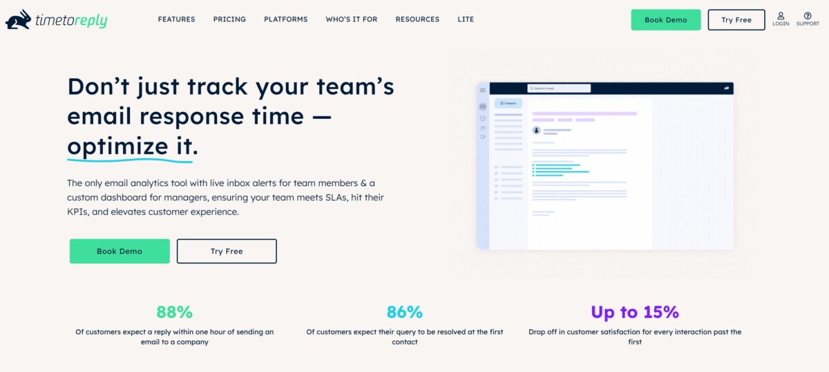 If you want to measure how quickly your team responds to leads or customers, timetoreply can help. It’s one of the most reliable email analytics tools for Gmail and Outlook, designed specifically to track reply times and inbox performance metrics.