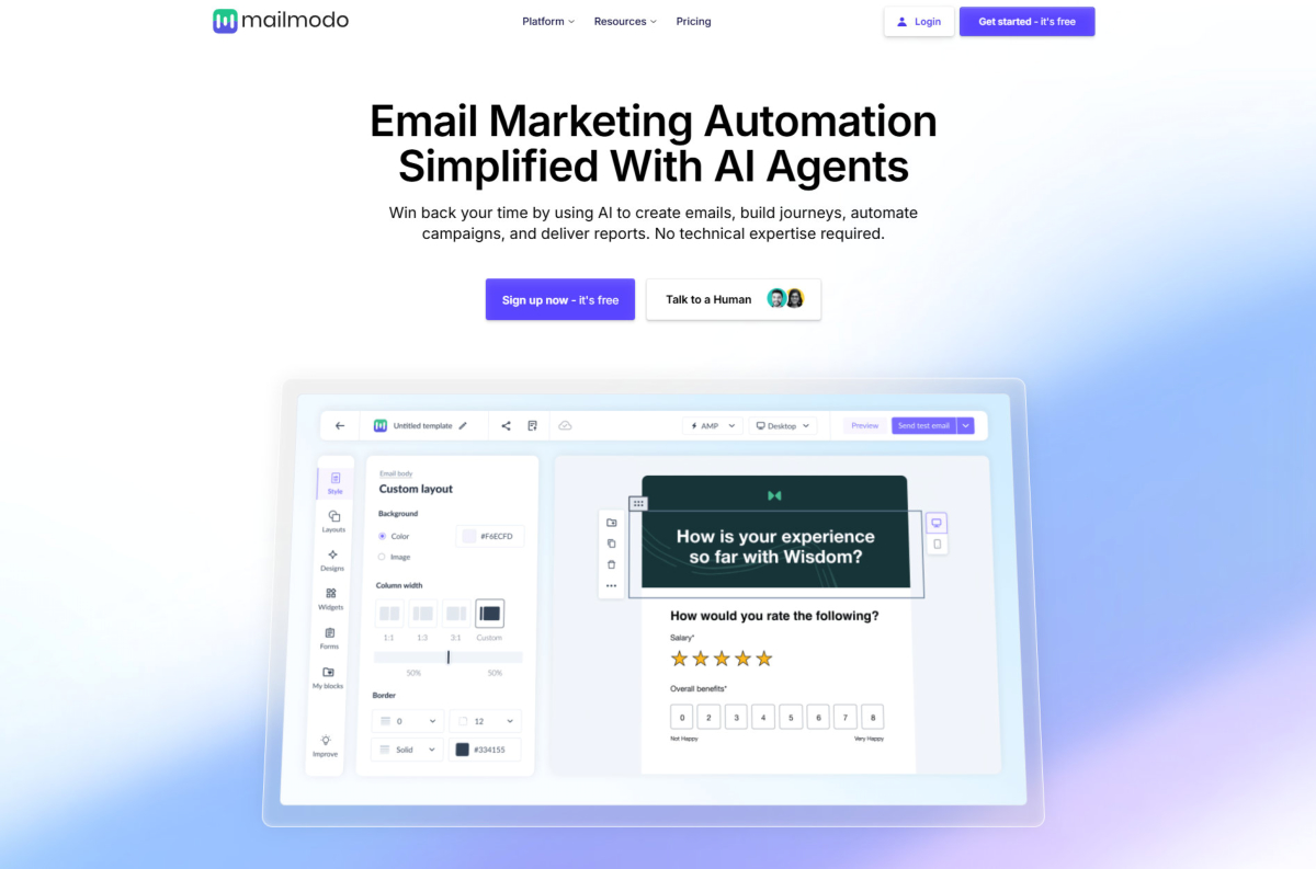 Best for: A complete AI-powered email platform with AMP technology that helps SaaS businesses, marketers, and startups build and automate smarter campaigns.