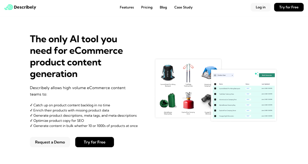 Describely.ai offers a comprehensive AI-powered platform designed to meet all your eCommerce content needs. This tool provides a seamless solution for generating high-quality product descriptions, enhancing SEO, and creating engaging content that drives conversions. Describely.ai is ideal for online retailers looking to improve their content strategy without the hassle of manual writing and editing. By leveraging advanced AI technology, Describely.ai helps businesses save time, reduce costs, and increase efficiency in content creation, making it an indispensable tool for eCommerce success.