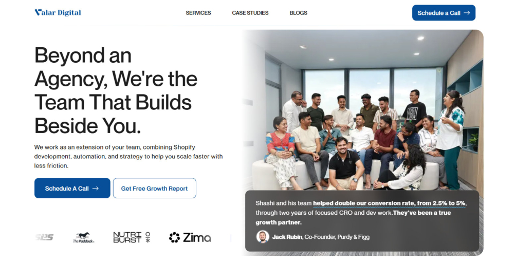 ValarDigital, led by Shashi, operates with a simple philosophy: they’re not just another dev shop. They position themselves as growth partners who combine Shopify development, CRO, and automation to help brands scale with less friction and clearer execution.
