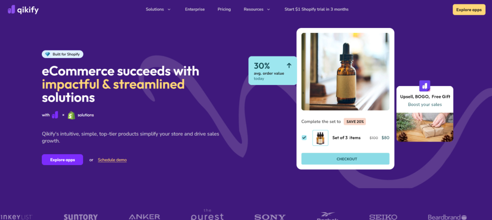 Qikify offers a suite of conversion optimization apps built for Shopify. With tools ranging from smart menus to popups and sales motivators, it’s a favorite among Shopify merchants aiming to enhance store navigation and increase revenue.