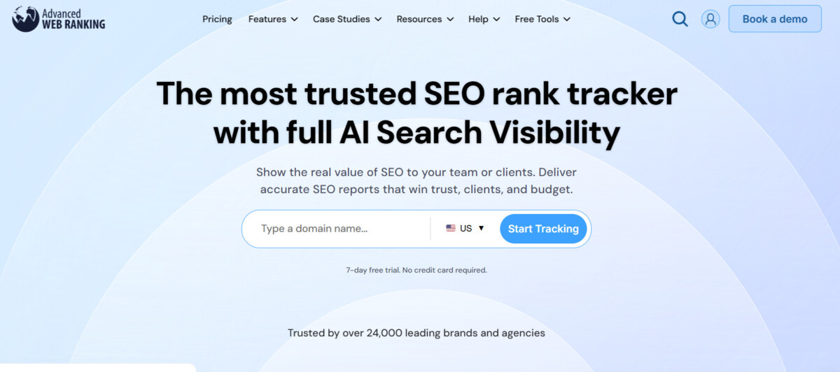 Advanced Web Ranking (AWR) is a robust SEO platform known for its precise and customizable rank tracking. It supports both desktop and mobile tracking across thousands of locations and integrates with tools like Google Analytics, Data Studio, and Search Console.