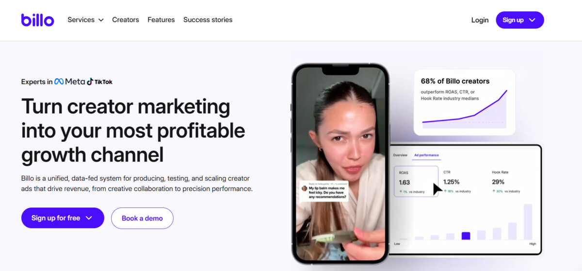Billo is a video content creation platform that connects businesses with real people who create authentic, short-form product videos. These videos are perfect for paid advertising on platforms like TikTok, Facebook, and Instagram, as well as for UGC-based landing pages and organic content.