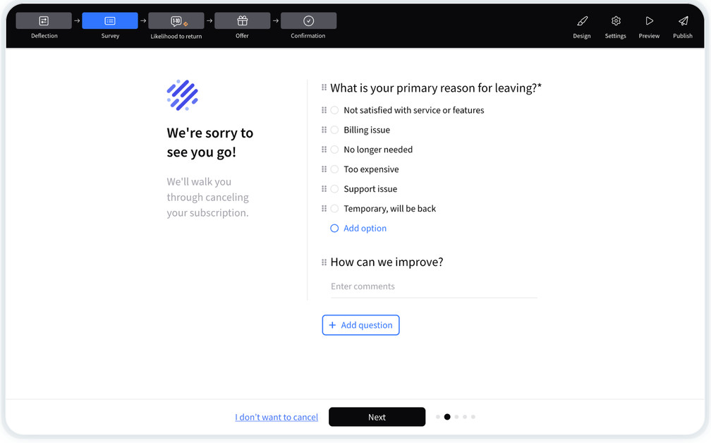 - Key Benefit: A properly structured cancellation flow can recover 20 to 39% of subscribers who would otherwise churn, turning your cancellation moment into a revenue event instead of a revenue loss.