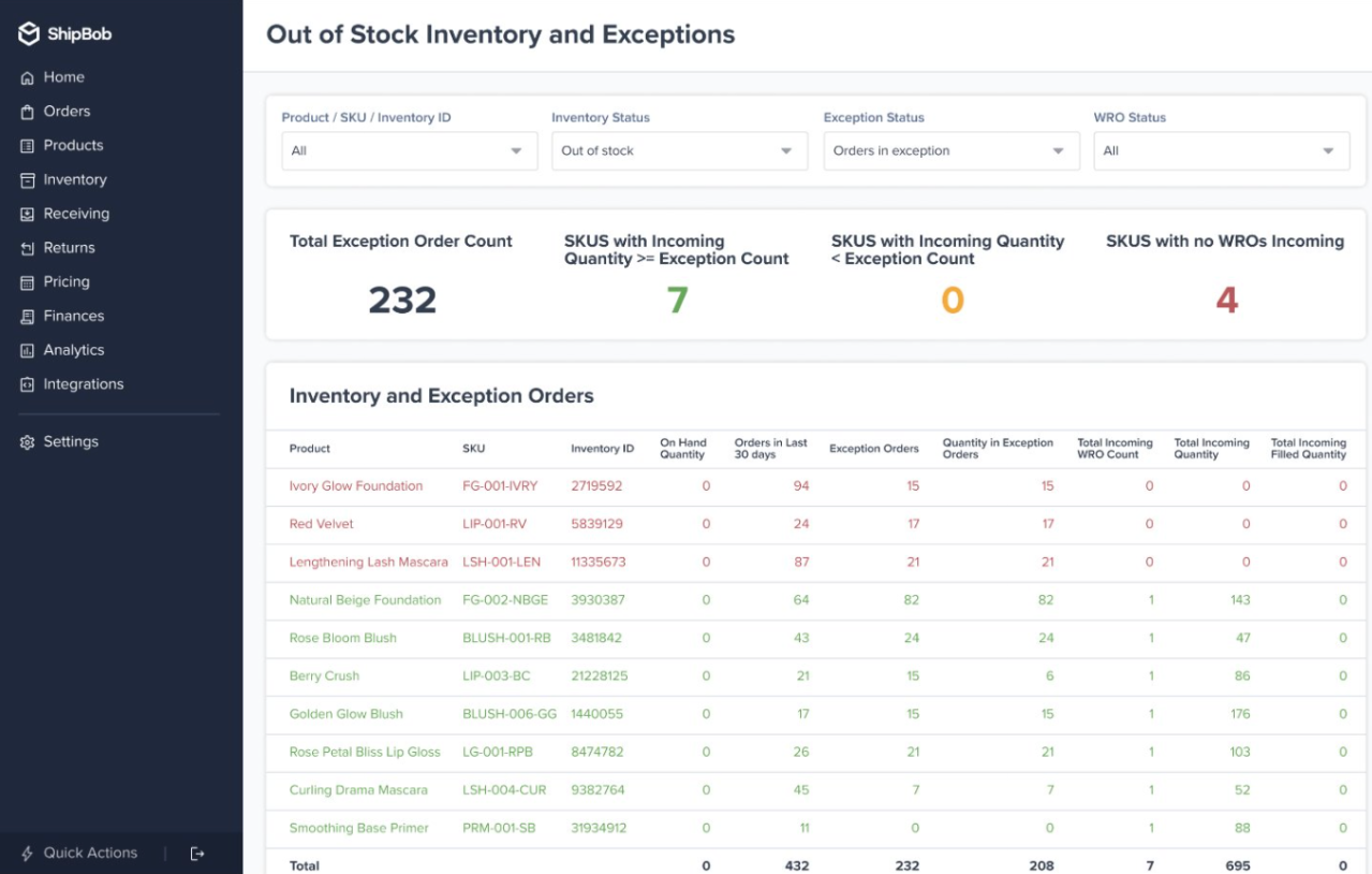 Merchants can access detailed reports and audit trails to help pinpoint the source of the discrepancy and take corrective action. By proactively addressing exceptions, ShipBob helps businesses maintain accurate inventory records and prevent potential customer service issues.