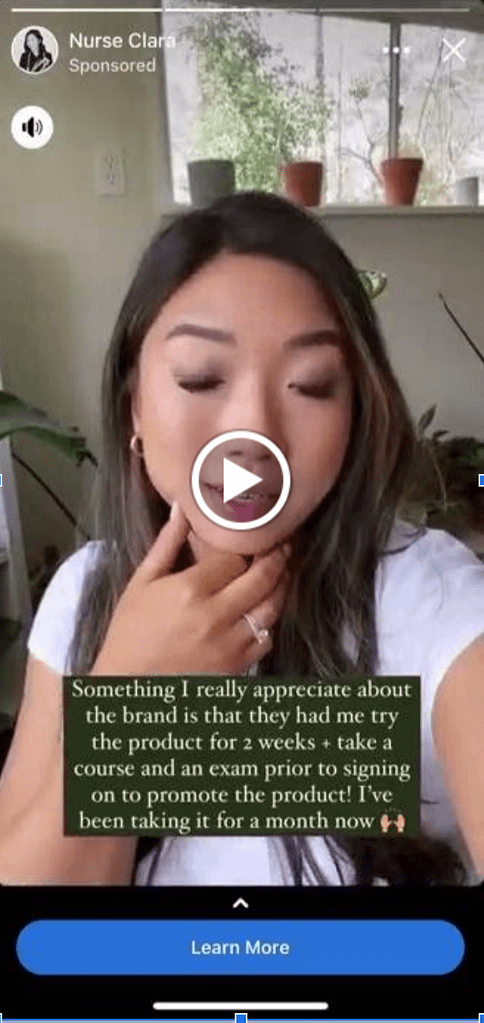 For higher-priced products or products that require a little more explanation in order to entice shoppers to make a purchase (for example, supplements, food & beverages, etc.), you’re able to use influencer whitelisting within your funnel to offer more education. When it comes from an actual influencer or real person using your product, it adds credibility to your products, which gives you a ton of social proof, thereby increasing the likelihood that a customer will complete the shopping journey.