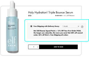 With Ordergroove’s strategic guidance, e.l.f. launched an innovative tired promotion structure designed to convert new site visitors and existing customers into subscribers with free shipping and 15% off their first order — and reward existing subscribers for their continued purchases with 20% off their second order, and 25% off their third order.